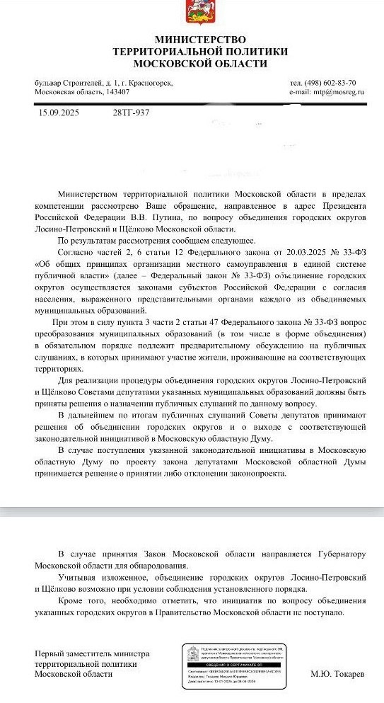 В ответ на пост ❌ Лосино-Петровский не присоединят к г.о. Щелково, во всяком случае пока Об этом рассказал первый заместитель министра территориальной политики МО Токарев М.Ю. Тем не менее до сих пор непонятно, почему наши чиновники ездят к главе соседнего округа на поклон и отчитываются о проделанной работе. А вы бы хотели присоединиться к г.о. Щелково? ⭐️ LPG