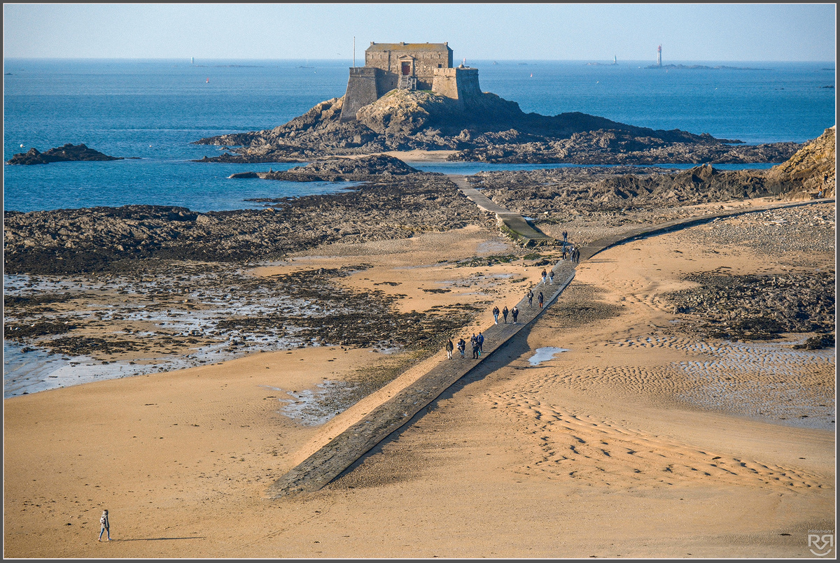 Сен-Мало интересен тем, что кроме города, здесь можно гулять по отливу. Когда вода уходит, открывается огромная территория и даже каменные дорожки, скрытые в другое время под водой. К некоторым местам окрестностей Сен-Мало можно подойти только по отливу, чем в свое время пользовались его жители, настроившие фортов вокруг города.