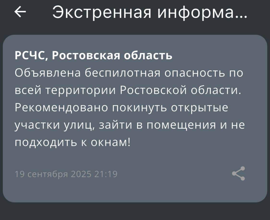 ❗️Беспилотную опасность объявили в Ростовской области