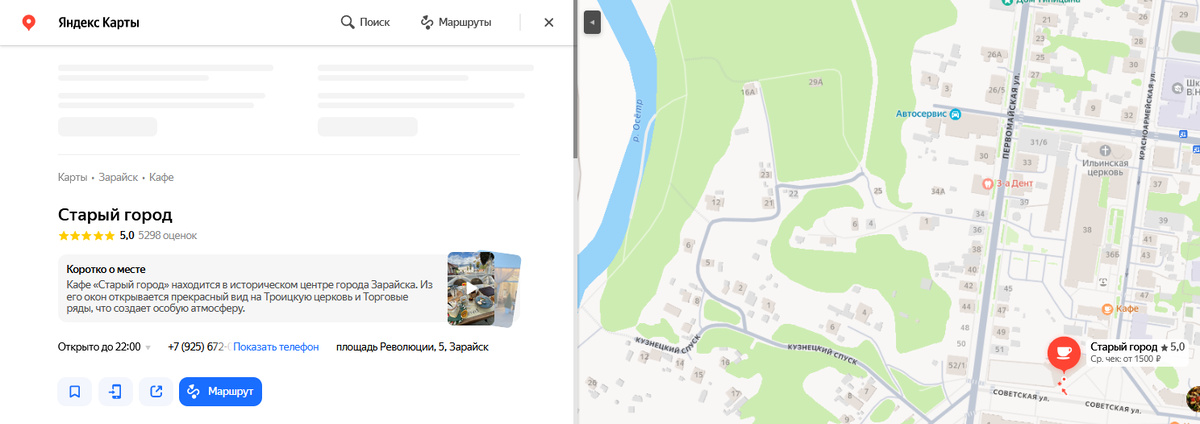 Это лучшее кафе в Зарайске. Тут прекрасно всё: от месторасположения в историческом центре города до великолепных блюд. В связи с этим есть один недостаток - ресторан пользуется большой популярностью у туристов, поэтому бронируйте столик в "Старом городе" заранее. Кстати, посмотрите сколько отзывов у данного заведения на Яндекс картах: более 5 тысяч благодарных откликов и рейтинг 5 ⭐⭐⭐⭐⭐. Рядом — Кремль (через дорогу), старая водонапорная башня, Вечный огонь, Троицкая церковь, Гостиный двор. Сидишь, ешь, смотришь — и получаешь удовольствие. Мы заходим в "Старый город" каждый раз, когда бываем в Зарайске. Однажды даже приехали в Зарайск ради того, чтобы покушать в этом кафе. Меню тут в увесистой папке, есть фото блюд, что очень удобно. Порции хорошие, цены полностью соответствуют уровню кафе и подаваемым блюдам. Средний счёт: 1500–2000 руб. Подача не быстрая, особенно когда много гостей. Каждое блюдо тут прекрасно. Нашли в телефоне несколько фотографий, которые были сделаны нами в разн