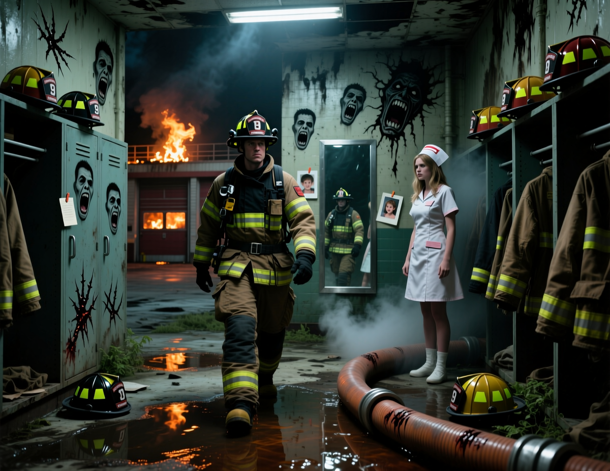 Ты — Алекс Рейнс, пожарный из соседнего города. Приехал с проверкой по наводке: «Часть №9 до сих пор выезжает на вызовы. Ночью. Без сирен. Без огней. Только дым из выхлопной — чёрный, как смола». Ты не веришь в призраков. Ты веришь в усталость, ошибки, травмы. Но не в это.