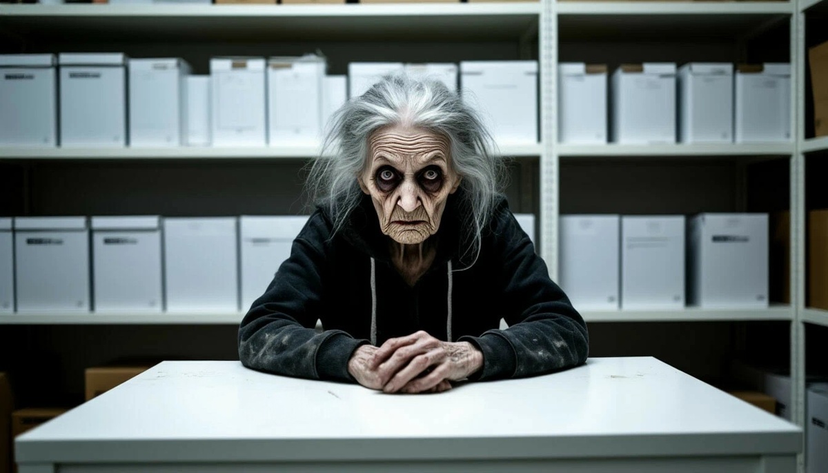 За столом сидела косматая старуха в лохмотьях, грязные седые патлы свешивались на лицо, когтистая рука, больше похожая на птичью лапу, постукивала по столешнице.