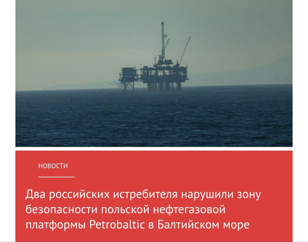 Давайте формулировать правильно: нефтегазовая платформа, которую Польша считает своей, по какой-то причине оказалась на пути пролета российских истребителей в российском Балтийском море. Яблочный Стас