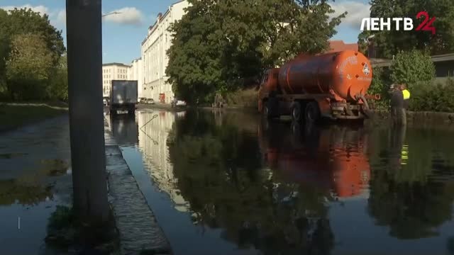 Губернатор Ленобласти Александр Дрозденко сегодня принял доклад главы администрации Выборга Валерия Савинова о работах по устранению подтоплений из-за проливных дождей. Как доложил Валерий Савинов, администрация справилась без дополнительной помощи. О том, как встретили день потопа выборжане и как спасали город, где выпала половина месячной нормы осадков, расскажет корреспондент ЛенТВ24 Ангелина Кукса. Она следила за ликвидацией последствий непогоды. Многим жителям пришлось оставить автомобили и передвигаться по городу в резиновых сапогах. Некоторые улицы превратились в каналы, которым Петербург может только позавидовать, а социальные объекты оказались в изоляции, словно острова, например, вокзал. Мы находимся на проспекте Ленина спустя несколько часов после подтопления этого участка. Силами сразу несколько служб, включая Водоканал и МЧС, удается выкачивать воду. Сколько еще времени потребуется для полной ликвидации последствий, неизвестно. Но можем увидеть, как сильно пострадали орган