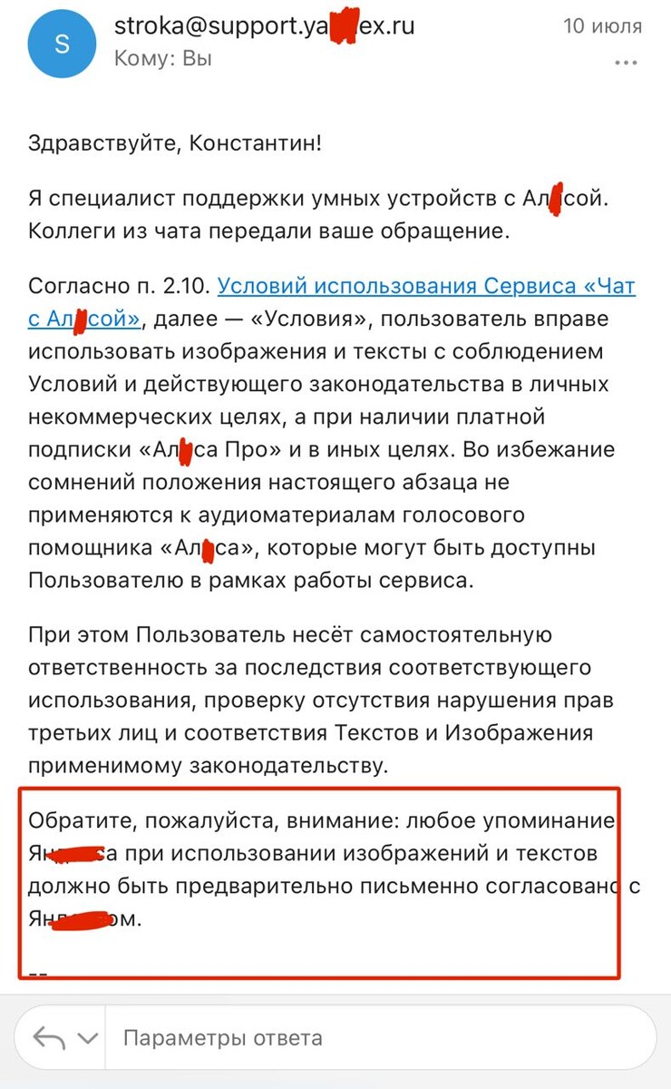 «А можно взять этот контент?» Часть 3. Ну вот, продолжение себя не заставило долго ждать и пожалуйста - новая порция маразма. Ранее вот здесь я описывл про использование Шеде8рума и @лисы >>> https://t.me/brandflavor/533 Ребят, вы ошалели что ли? Нафига мне использование изображений в личных целях? Мне в рекламу нужно интегрировать креативы, а не бегать с бумажками на согласование. Вот правда, вроде делается всё как будто для народа. «Пожалуйста! У нас есть своё!» Да, не такое продвинутое как гпт, но всё же. Пробуй, тестируй, используй. Но нет. «Купи Про!», тогда разрешим тебе использовать сгенерированные изображения. В ином случае нет, попадос! И если кому-то интересно, то вот: https://yandex.ru/legal/alice_chat/