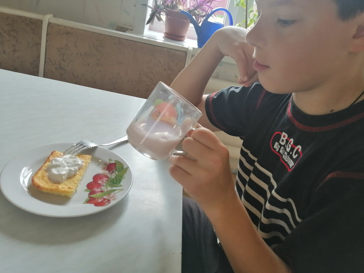 Мальчишек накормила творожной запеканкой со сметаной, которую приготовила ещё с вечера. Юля обычно завтракает в школе, но сегодня решила составить компанию братьям. Запеканка – её самое любимое блюдо.