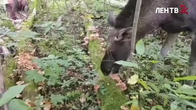 Сотрудники «Приюта Белоснежки» показали, как лось Маруся собирает грибы