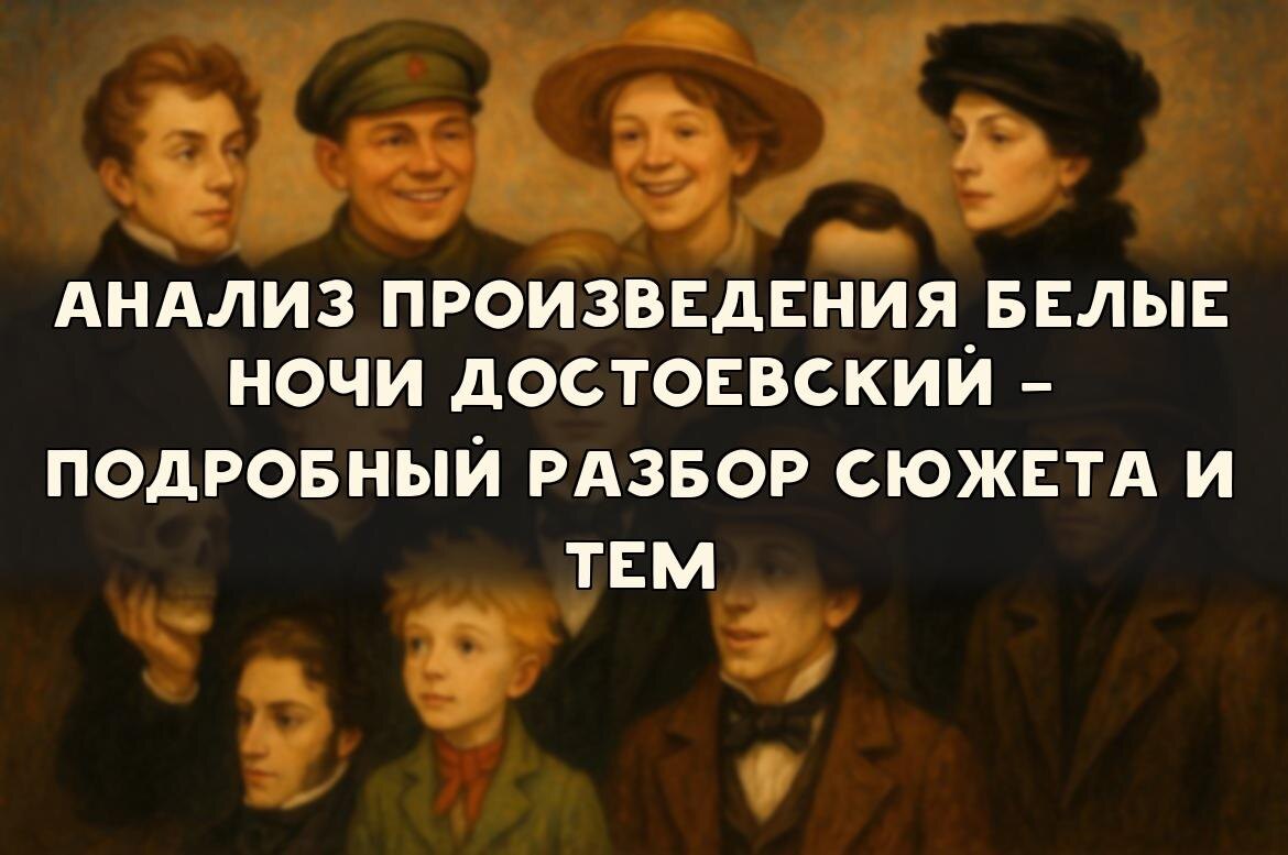 В Белых ночах Достоевский строит сюжет вокруг знакомства одинокого рассказчика с молодой девушкой Настенькой на фоне белых ночей Санкт‑Петербурга. Это знакомство рождается на границе между реальностью и мечтой: герой — задумчивый мечтатель, она — открытая и полная надежд, и именно их встреча становится импульсом к дальнейшему общению.