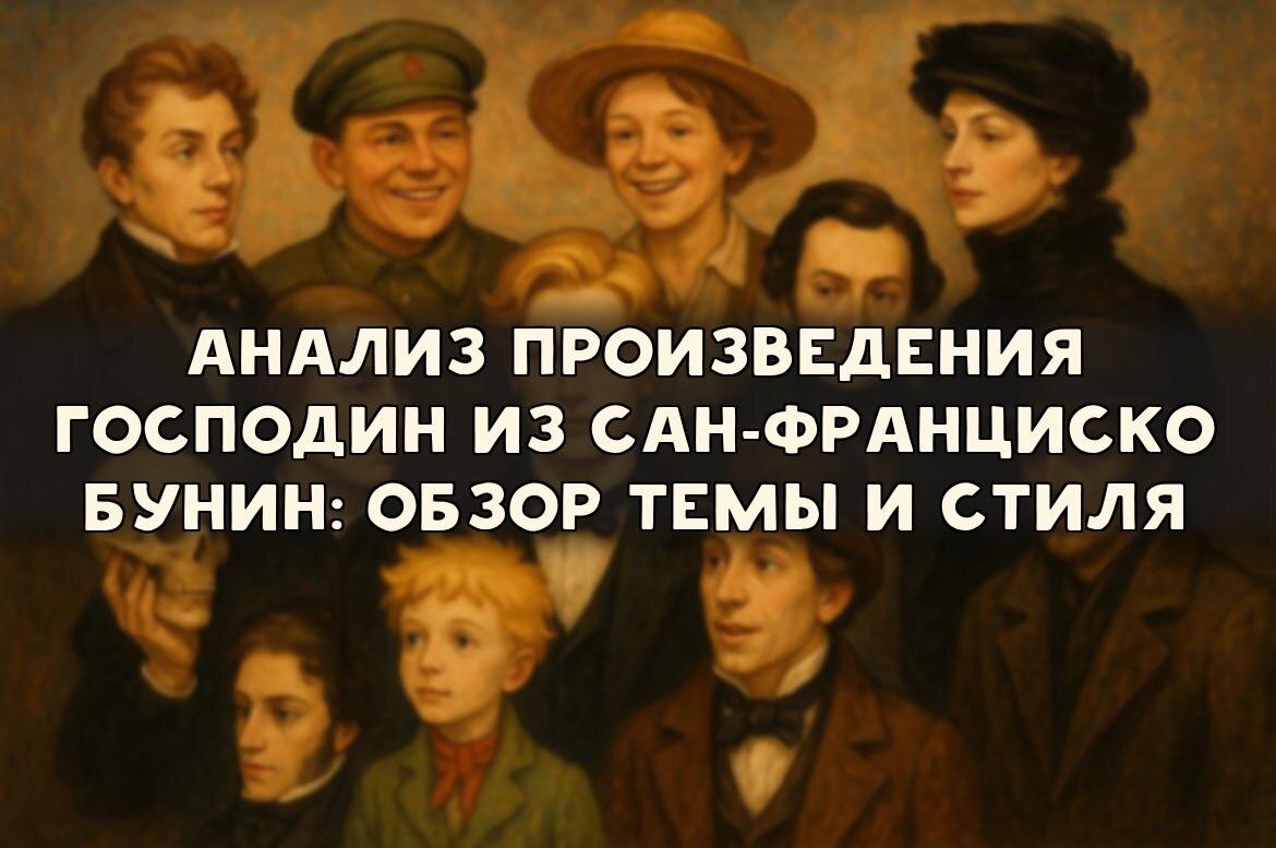 В анализе персонажей рассказа «Господин из Сан-Франциско» центральная фигура — господин из Сан-Франциско — выступает как воплощение западного богатства и духовной пустоты. Ему присущи холодная улыбка, вежливость без сочувствия и полная незаинтересованность к судьбам других людей; через такие черты Бунин демонстрирует, как материальные ценности превращают человека в нечто вроде экономического фактора.