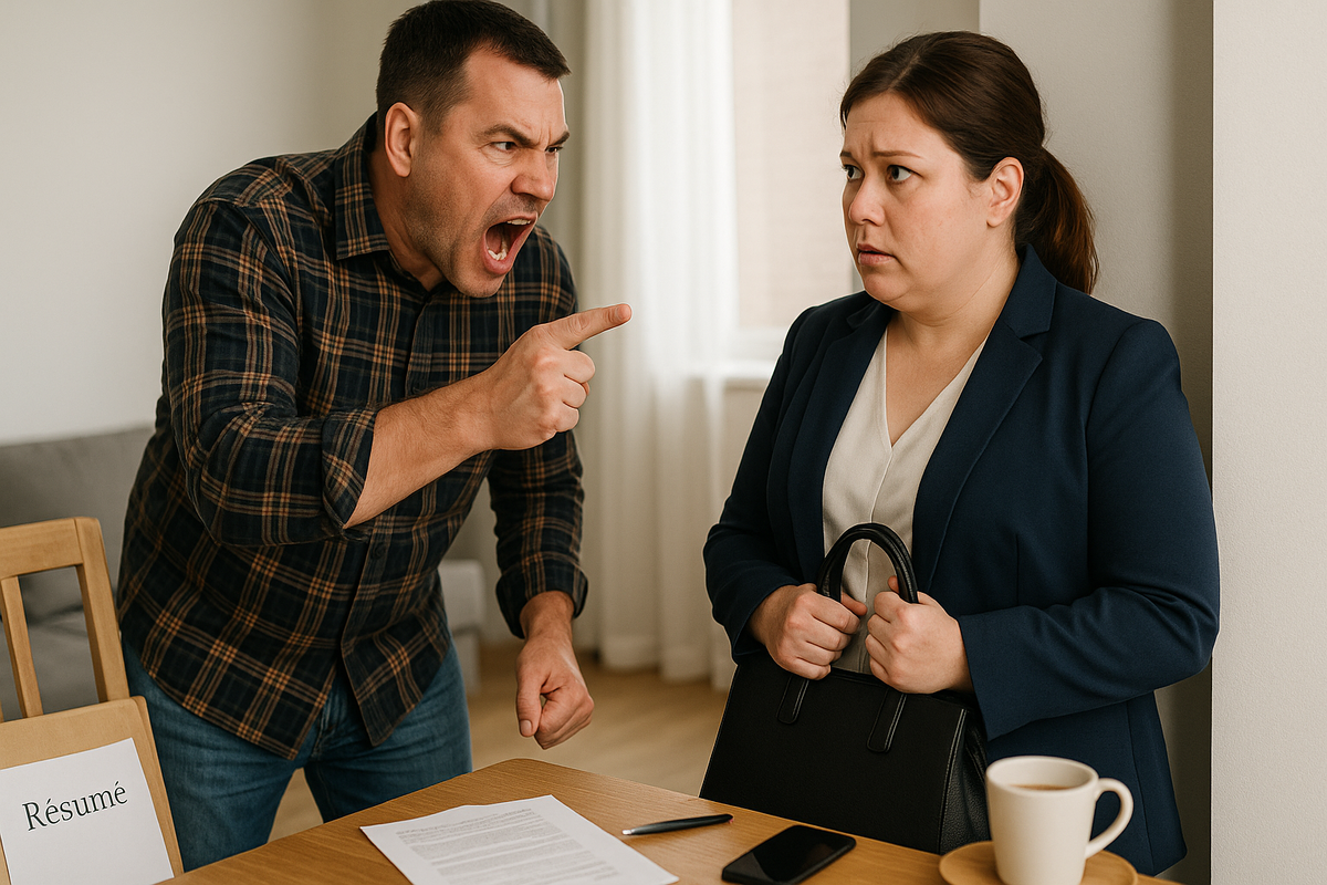 — Какая ещё карьера?! — рявкнул муж. — Моя мать калека дома сидит, а ты на собеседование собралась?!