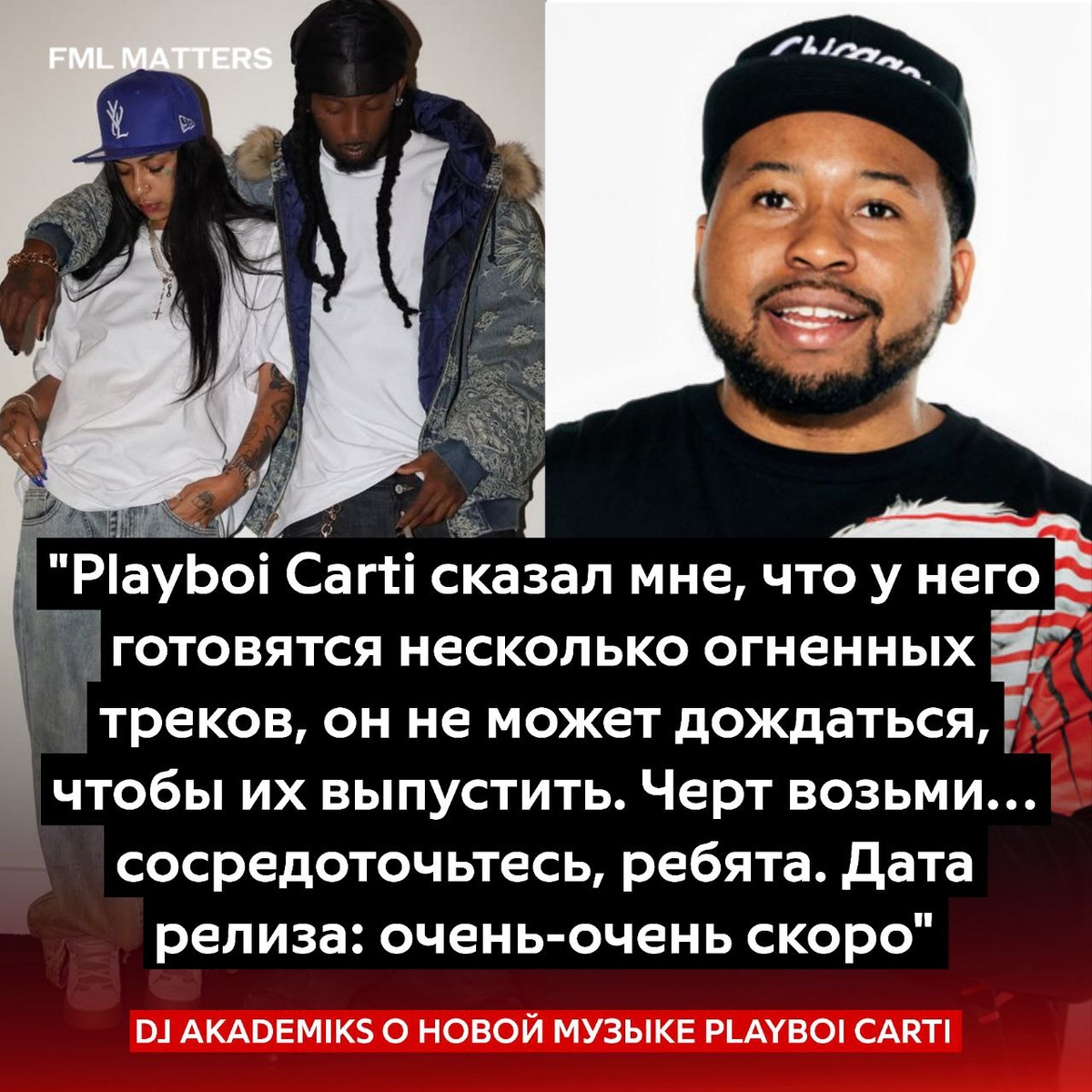 ⁉️ АЛЬБОМ PLAYBOI CARTI «BABY BOI» — ВСЁ? Сегодня жена Карти — Gio активно отвечала фанатам и троллила их в Твиттере (X). На жалобу о редких релизах Карти она написала: «Кстати, с тех пор как я рядом, вышло больше 30 треков, но не переживайте, я скажу ему отложить BB BOI подольше, ща «Он в студии каждый день с заката до рассвета, он дева и перфекционист», — доказательство того, что рэпер доводит треки до идеала Позже она уточнила, что шутит: «Сорри, что расстроила, я троллила… ладно, мой косяк» Сам же Академикс подтвердил, что Карти активно работает над новыми треками, и релиз «BABY BOI» действительно скоро выйдет. По его словам, у артиста готовятся несколько сильных композиций, и он с нетерпением ждёт их выхода, призывая фанатов сосредоточиться и дождаться релиза 💀 FML MATTERS