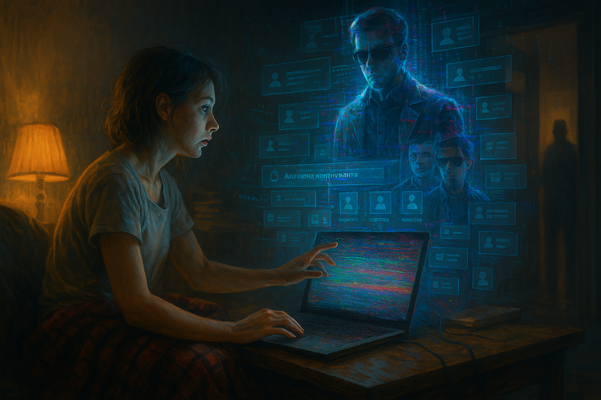 — И что? – Ангелина даже не подозревала, что интернет выдаст столько информации – от детских фоток до последних «достижений» на форумах для одиноких дам 40+. Даже порносайт, на который она разок случайно заглянула и вроде даже не регистрировалась… Выходит, и там она наследить успела.