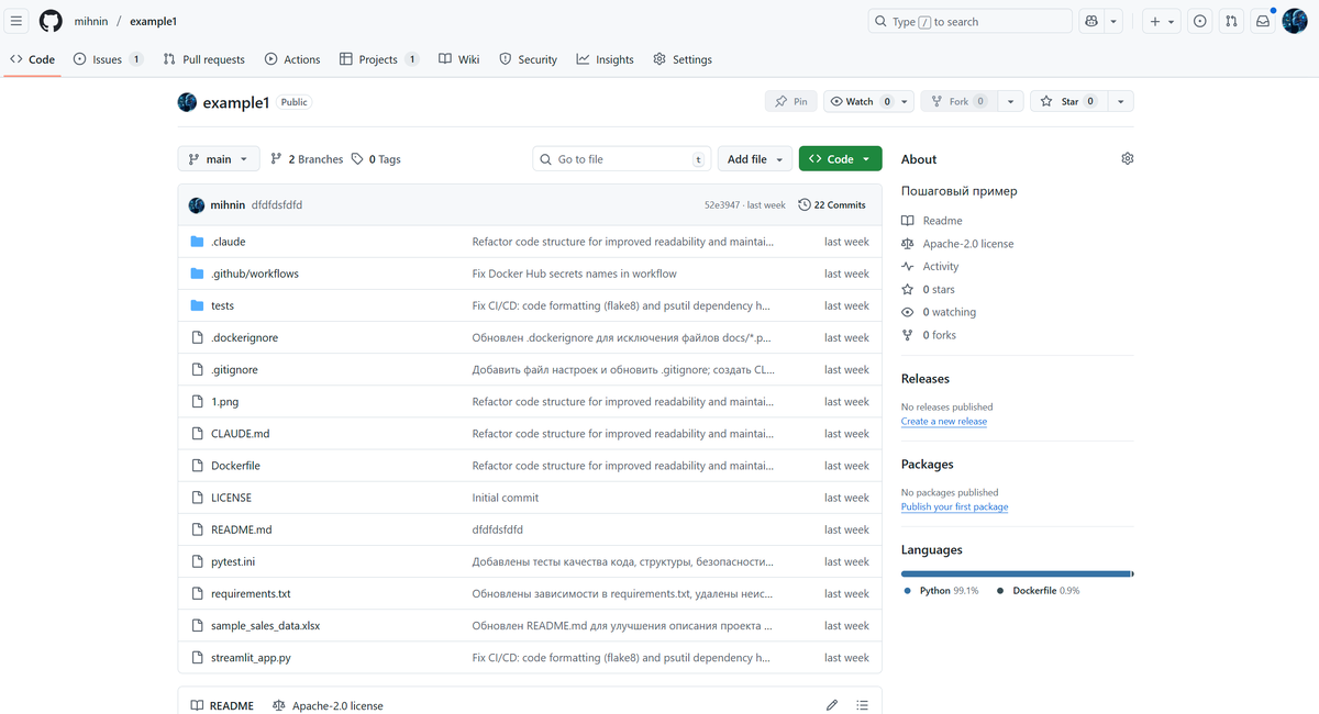 Привет! Вы решили создать свое первое серьезное приложение для анализа данных на Streamlit и для этого смотрите на GitHub. Отличный выбор! Это стандарт индустрии и лучший друг разработчика. Давайте используем ваш скриншот как карту и разберемся, что здесь к чему.