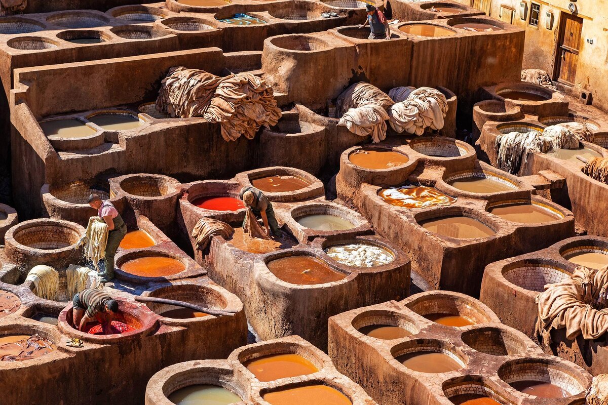 Несмотря на тяжелые условия труда, красильни Феса остаются символом старинного ремесла. Здесь, словно по волшебству, грубая кожа превращается в мягкую, податливую материю. Мастера, чьи семьи передают секреты производства из поколения в поколение, с невероятной сноровкой обрабатывают шкуры, погружая их в ванны с растительными экстрактами и минеральными веществами.