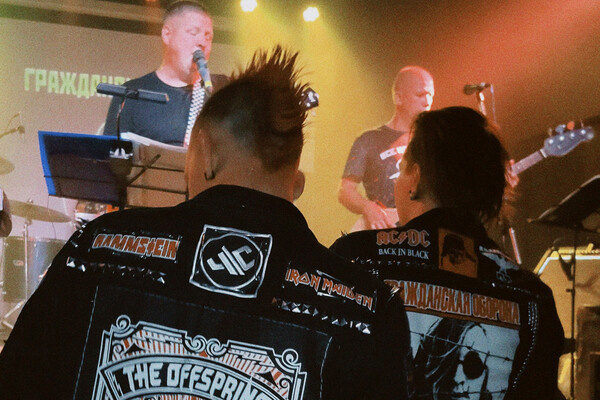 Стены вокруг двери клуба замазаны черной краской, скрывшей старые граффити-надписи. Крыльцо не освещено, в темноте на улице курят настоящие фанаты. Джинсовые куртки изрисованы от руки и усыпаны нашивками любых групп (преимущественно российских), камуфляжные штаны заправлены в берцы, с поясов свисают цепочки. Есть девушки, с ярким макияжем, но в основном собрались мужчины. Мелькает даже парень с высоким розовым, тщательно поставленным ирокезом.