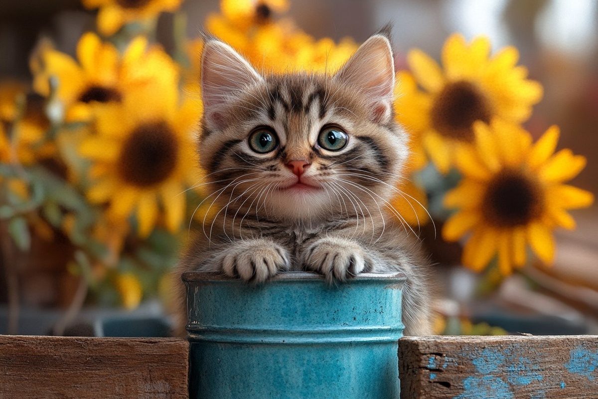 Привет, солнышко! Как этот милый котенок среди подсолнухов, я просыпаюсь сегодня с ощущением тепла и радости. Пусть этот день будет таким же ярким и солнечным, наполненным улыбками и позитивными моментами! Я готова впитывать энергию солнца и делиться своим светом с миром. Ведь сегодня День подсолнуха!