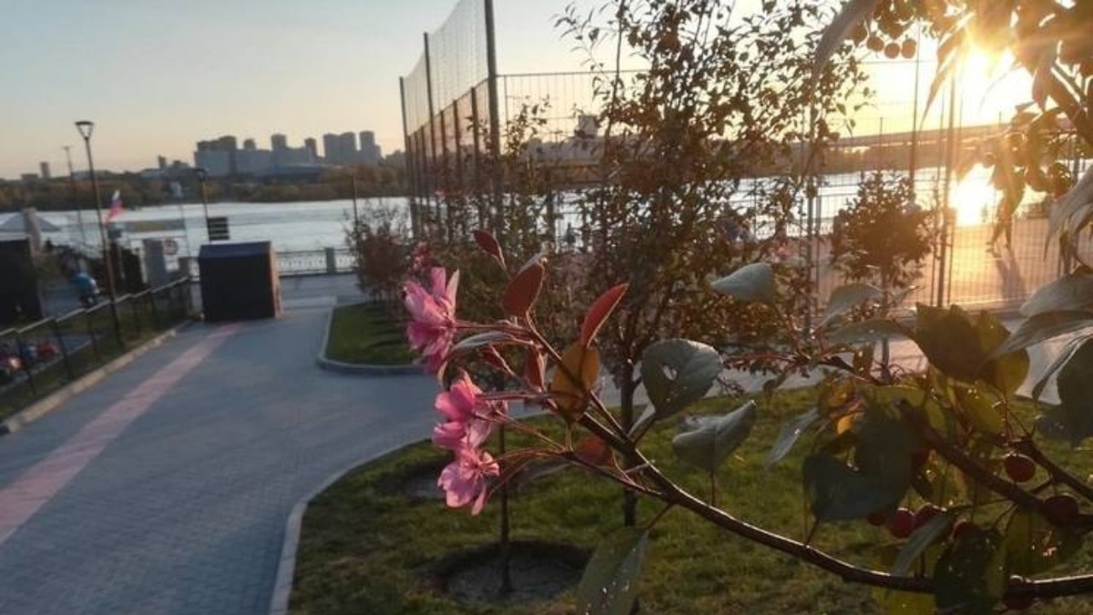 На набережной Новосибирска во второй раз зацвели яблони Недзвецкого