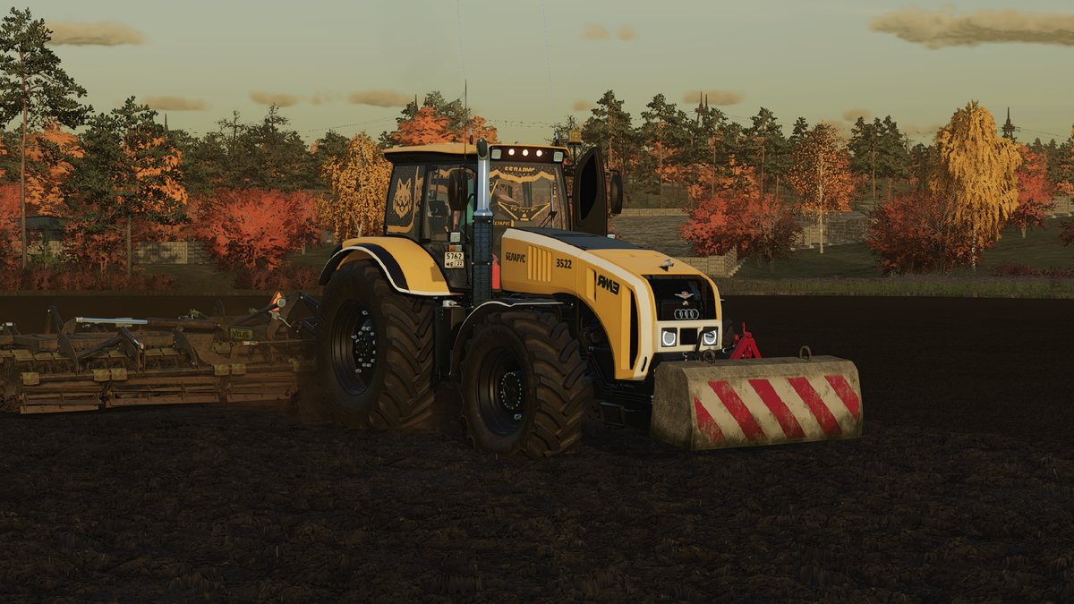 Совхоз «Красный Партизан», наши дни Вечер. Солнце, раскалённый шар, уже коснулся края степи, растёкшись по небу малиновой и лиловой акварелью. Длинные тени от придорожных копен ложатся на взрыхлённую землю. Воздух остывает, наполняясь запахом полыни, прелой соломы и свежей земли - холодным, чистым, кристальным дыханием осени. На краю бескрайнего поля, уже освобождённого от пшеницы, работает МТЗ-3522. Не спеша, с достоинством, он тянет за собой широкую крылатую борону. Стальные диски, похожие на гигантские шестерни, вгрызаются в пласты земли, дробят комья, укладывают стерню, готовя поле к зимнему сну. Это не спешка уборки, а неторопливый, почти ритуальный уход за землёй. В кабине тракторист Аркадий. Он не гонится за планом, не смотрит на часы. Он ведёт свой «Беларус» по ровной колее, одна рука на штурвале, другая - на рычаге гидравлики. Окна кабины открыты настежь, и прохладный ветерок обдувает его загорелое, усталое и абсолютно счастливое лицо. Его мысли текли плавно, в такт гудению м