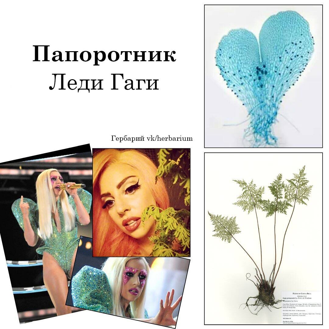Папоротник, который получил имя Леди Гаги. В 2012 году группа американских учёных приняла решение назвать новый род папоротников именем певицы Леди Гаги — Gaga. Для одного из видов было выбрано название Gaga monstraparva, отсылающее к прозвищу её поклонников — «Little Monsters». Это решение было основано на трёх ключевых моментах: форма органов размножения папоротника напоминала букву «G», в его ДНК был обнаружен соответствующий генетический код, а сама артистка, по словам исследователей, является символом смелого и новаторского мышления. Певица, узнав о такой чести, была в восторге и даже организовала поиски живого экземпляра во время своего тура, чтобы продемонстрировать его в вазе от модного дома Versace. #будьвтеме #смирупонитке