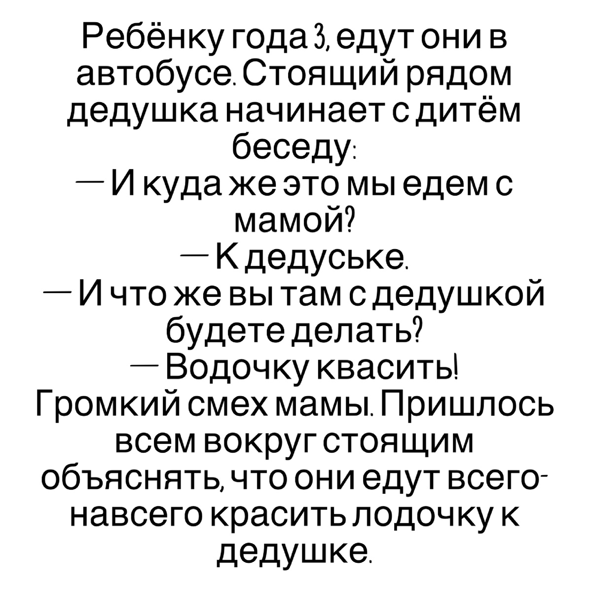 Ребёнку года 3, едут они в автобусе. Стоящий рядом дедушка начинает с дитём беседу: