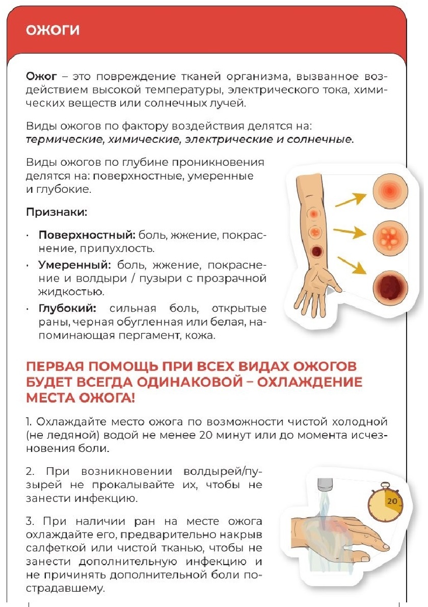 ПЕРВАЯ ПОМОЩЬ ПРИ ВСЕХ ВИДАХ ОЖОГОВ БУДЕТ ВСЕГДА ОДИНАКОВОЙ – ОХЛАЖДЕНИЕ МЕСТА ОЖОГА!