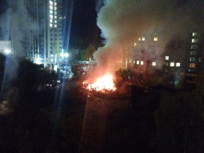Пожар произошел на стройке в новосибирском микрорайоне Щ вечером в пятницу, 19 сентября.