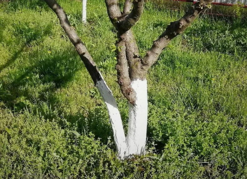 Известковое молоко (известь + глина + немного медного купороса) защищает от ожогов и трещин коры, а также отпугивает вредителей. Побелка не только эстетика, но и «защитный крем» для дерева. 3. Обработка от вредителей