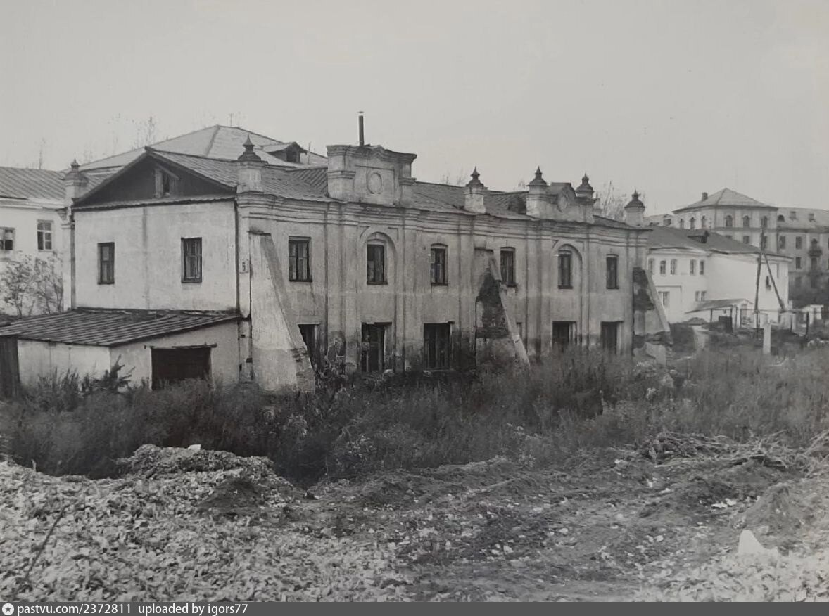 Двухэтажное каменное здание по улице Пичугина (Гостинодворскому пер.), бывшее здание Нижних торговых рядов.