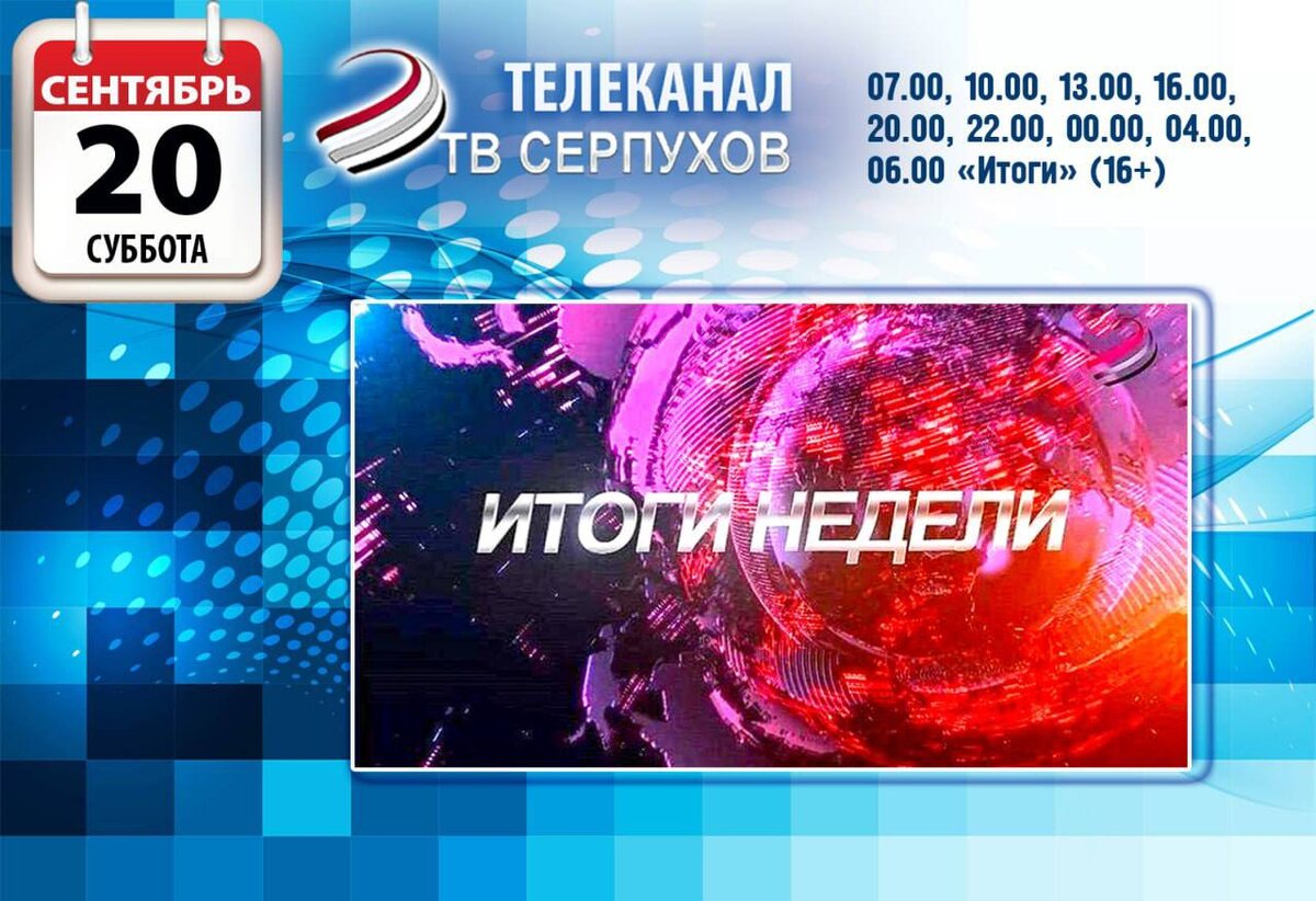 Что смотреть в субботу на нашем телеканале? Мы вам подскажем ⬇️ 07.00, 10.00, 13.00, 16.00, 20.00, 22.00, 00.00, 04.00, 06.00 «Итоги» (16+) 06.35, 08.35, 19.00 м/ф «Мультфильмы» (6+) 07.30, 17.35, 04.55 д/ф «Деревни России» (12+) 07.55, 21.25, 22.30 д/ф «Истории города N» (12+) 09.10, 10.30, 19.10, 20.30 т/с «И снова будет день» (16+) 11.20, 13.30, 23.35, 00.30 т/с «Цветы зла» (12+) 15.00, 16.30, 03.10, 04.30 х/ф «Дабл трабл» (16+) 17.00 программа «НеУроки» (6+) 18.30 д/ф «Советские прорывы: вдохновение для будущего» (12+) 22.40 д/ф «Наука и технологии сегодня» (12+) Подписаться на ОТВ-Серпухов / ВКонтакте /Одноклассники / МАХ