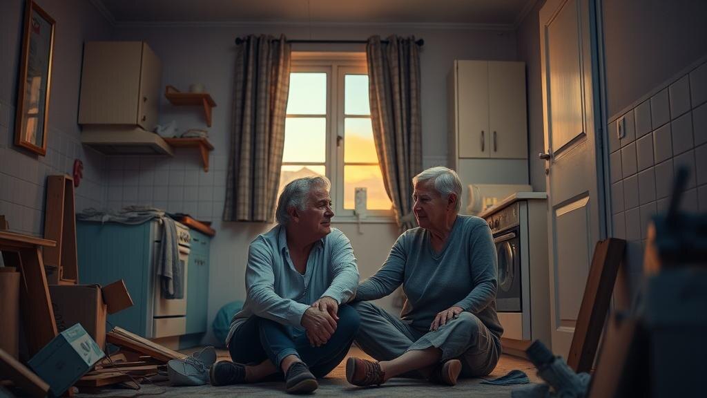 В квартире стоял запах строительной пыли и отчаяния. Надежда молча собрала пластиковые пакеты с мусором; Олег пытался дозвониться по последнему номеру из объявлений. Вечером за ужином — остывшие макароны на табуретке в прихожей — они по-настоящему поссорились: