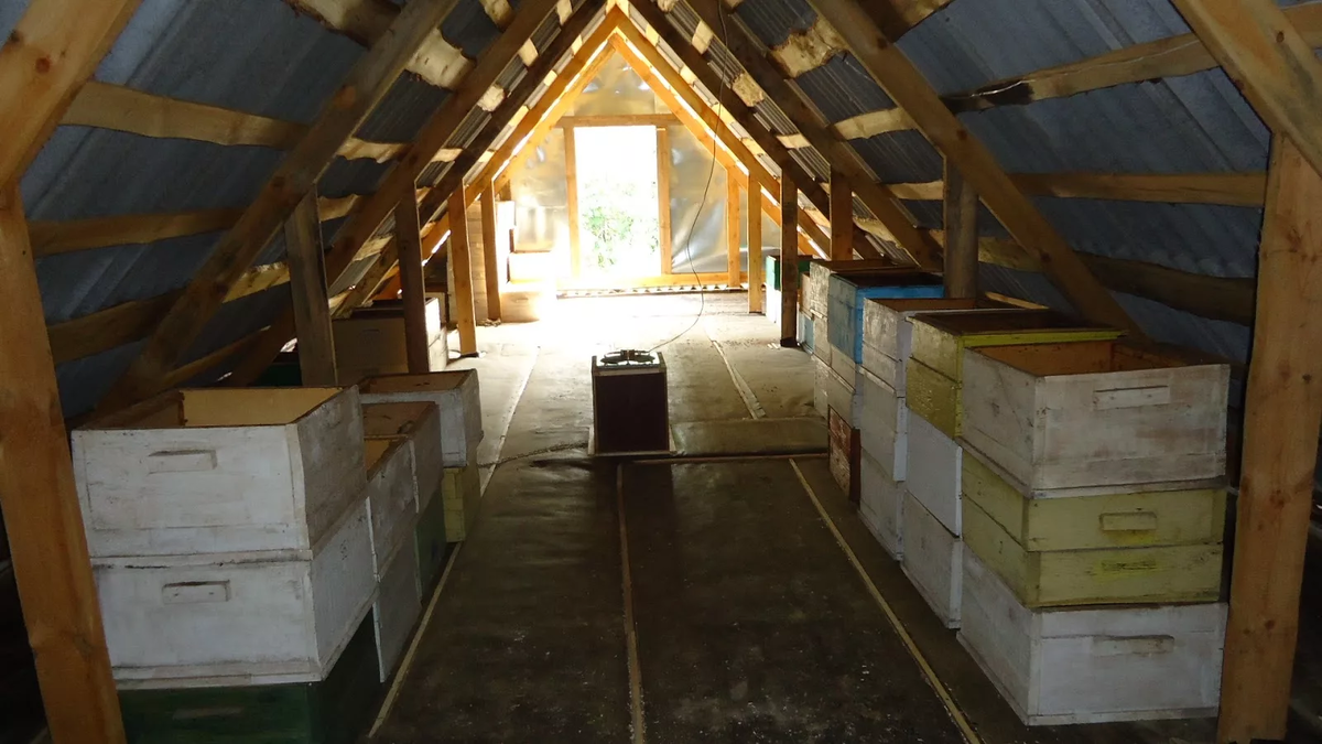 Зимовники бывают трех типов; надземные, подземные и полуподземные. Уровень залегания грунтовых вод должен находиться не ближе 1 м от пола зимовника, что определяет выбор того или иного типа этой постройки. Для строительства зимовника лучше всего подходит сухой возвышенный участок пасечной усадьбы. Легче всего поддерживать стабильный уровень температуры воздуха в подземном зимовнике. На каждую семью пчел, в зависимости от типа применяемых ульев, должно приходиться 0,5-0,9 м3 внутреннего объема зимовника. В бетонных, каменных и кирпичных зимовниках пчелы зимуют плохо, а в зимовниках с деревянными стенками - лучше всего. Если же приходится использовать для зимовки пчел помещение из бетона, камня или кирпича, то его стены и потолок надо обшить сухими досками или тесом (в 2-3 см от стены), которые при избытке влаги в помещении поглощают ее а при сухом воздухе отдают, способствуя тем самым стабилизации гигрорежима для пчел.