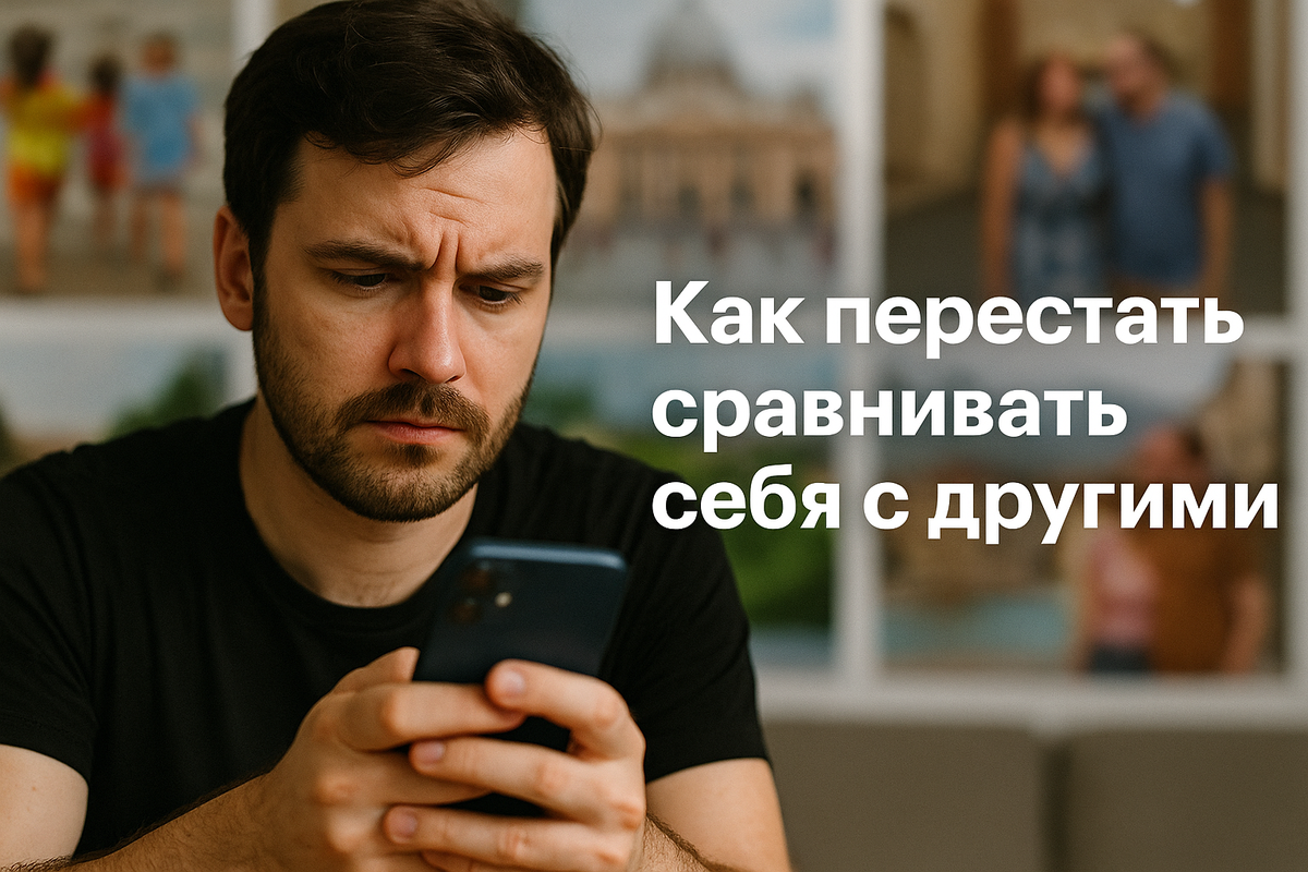 С утра открываю телефон. У одного друг свадьба, у другого — новая машина, у третьего — ребёнок, у четвёртого — отпуск в Италии. А я сижу дома, ем пельмени и думаю: — Что я делаю не так? Это чувство знакомо почти всем. Ты вроде не живёшь плохо, но как только видишь чужие успехи, кажется, что твоя жизнь скучная, а ты отстал от поезда. Наши предки сравнивали себя с другими членами племени — чтобы понять, кто сильнее, кто быстрее, кто лучше охотится. Это помогало выжить. Но в 2025 году мы всё ещё сравниваемся, только теперь не с соседом по пещере, а со всем миром. Раньше мы сравнивали себя с соседями, коллегами, двоюродными братьями. Теперь мы сравниваем себя с блогерами, миллионерами, случайными людьми из другой страны. И угадайте, кто в этой игре всегда проигрывает? В соцсетях мы видим только лучшие моменты: улыбки, фильтры, идеально сервированный стол. Никто не выкладывает фото из поликлиники или ссоры на кухне. Но мозг всё равно верит, что у других жизнь идеальна. Был случай: я весь ве