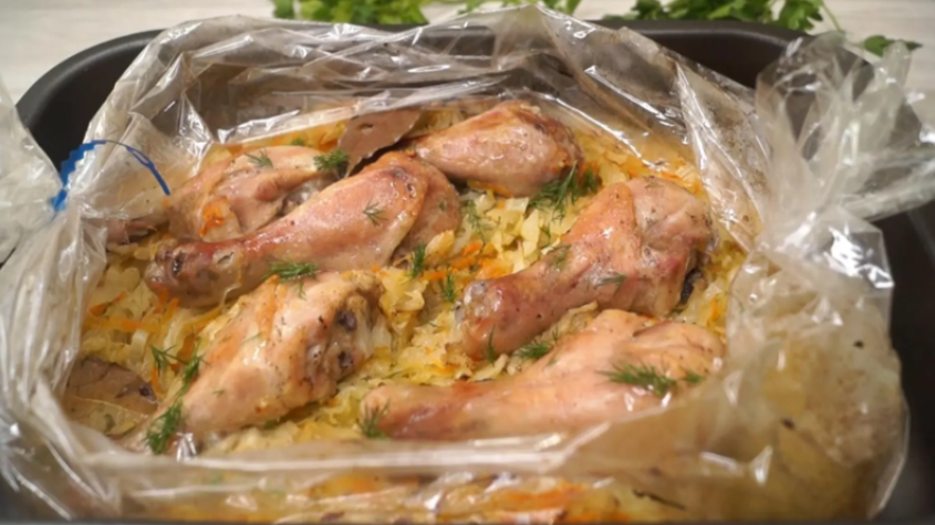 Ужин за 15 минут: Капуста с курицей в рукаве. Тает во рту и не отнимает времени!