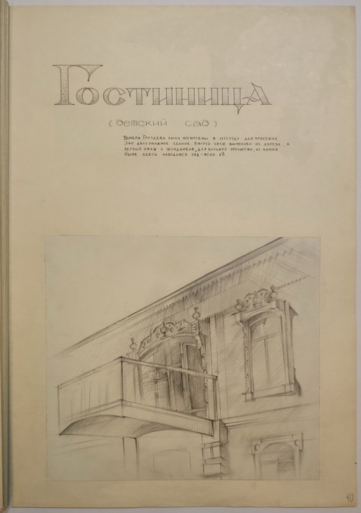 1979 / г. Шадринск. Церкви и усадьбы. Материалы обмерной практики. Листы 40-41. Гостиница (детский сад)