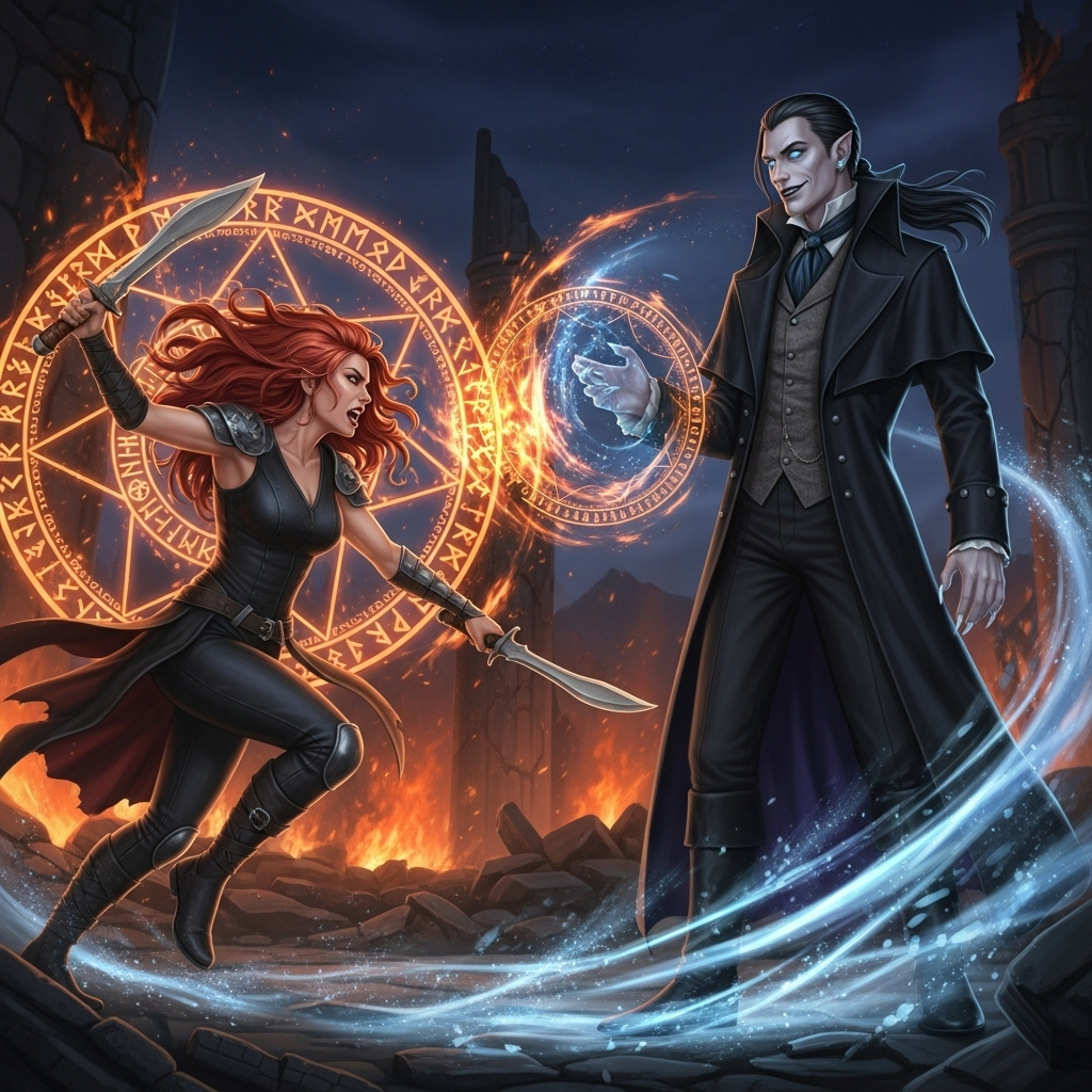 ...Перед Кирой был полуразрушенный вход в здание. Стены местами осыпались, дверь висела на одной петле. - Если тебе нужна моя кровь - возьми ее, - услышала Кира где-то то ли внутри головы, то ли возле уха. - Вот и показал клыки… - фыркнула Кира, которая очень старалась храбриться и держать себя в руках. Совершать откровенные глупости в ее планы сейчас точно не входило, а, значит, нужно куда большее, чем просто рефлексы и оружие. Она шагнула в темный проход, на ходу накладывая на себя несколько рун, чтобы видеть в темноте, видеть сокрытое. Так сразу придумать руноскрипт, чтобы усилить тело, не получилось. Но это была отличная идея на будущее… если оно будет. Обрез она перевесила так, чтобы удобнее было до него добраться, проверила в кобуре пистолет и баллончик с газом. - Как будто бы я их прятал, - раздалось возле уха. Рыжая резко обернулась, рубанув одним из кукри по воздуху. Руки заметно подрагивали, а сердце в груди колотилось так, что, наверное, вампир ее сейчас услышал бы, даже есл
