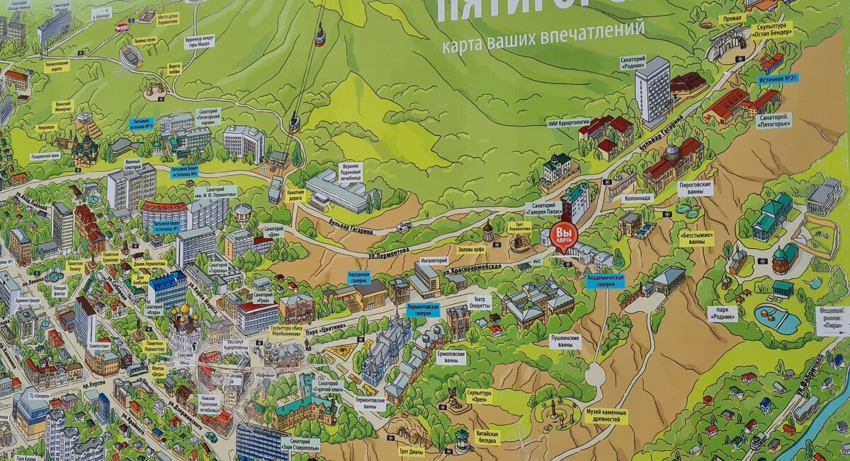 Приехали в Пятигорск утром в 7:15, то есть дорога заняла 23 часа. Я изначально планировал доехать до санатория на автобусе № 1, который шёл отсюда в нужном направлении, но к нам подошёл мужчина чуть старше нас и за 400 рублей мы с ветерком домчались минут за 20 ко входу в санаторий. Если у нас были путёвки через компанию АЛРОСА, то внуку заранее брали дополнительное место, с "полным фаршем" - с питание и лечением, что обошлось на 18 дней в 45 тысяч рублей. Нас зарегистрировали в считанные минуты (заезд в санаторий был с 8 утра) и мы отправились в свой номер, который находился в этом же корпусе на втором этаже.