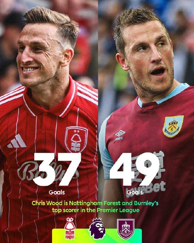 Крис Вуд является лучшим бомбардиром и "Ноттингем Форест", и "Бернли" в Премьер-Лиге. Сегодня они играют между собой ☝️