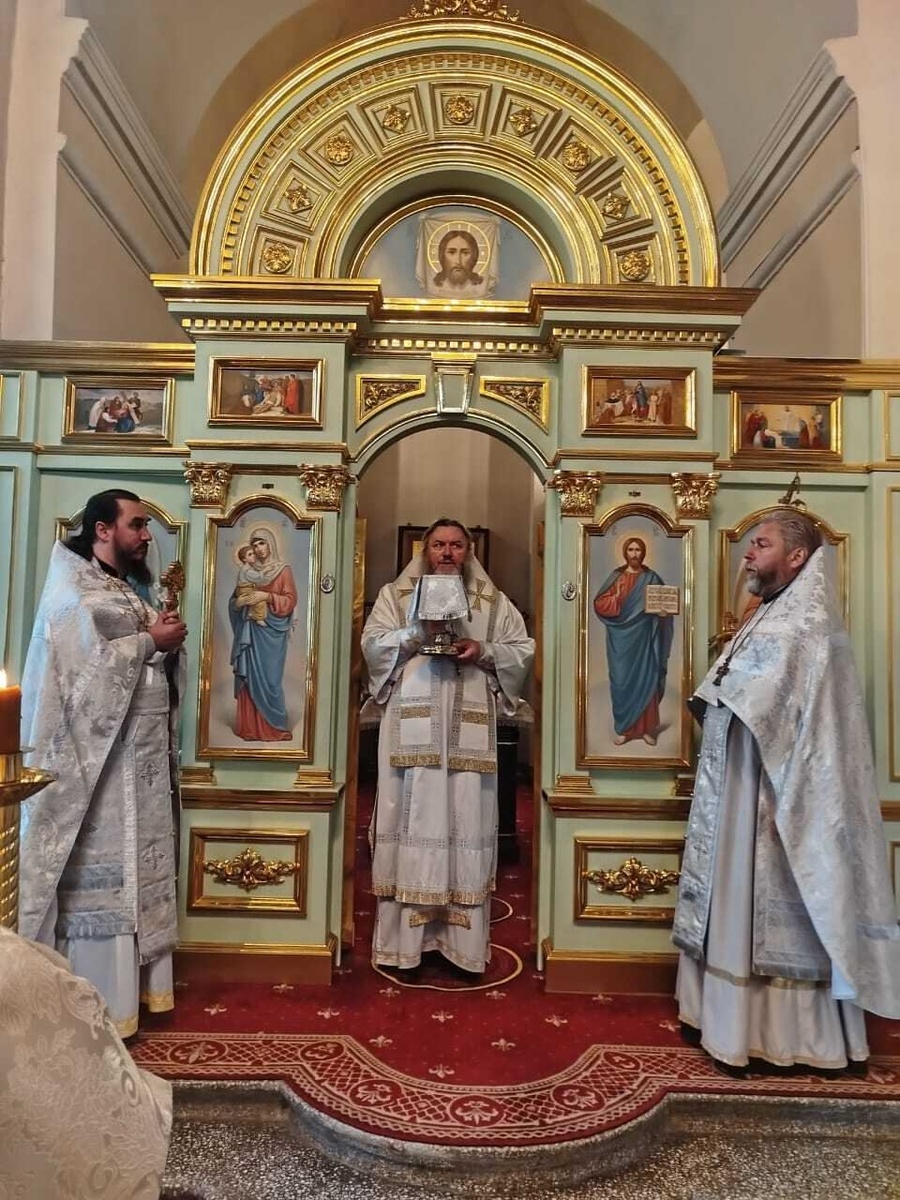 Архипастырю сослужили протоиерей Алексий Воробьев, иеромонах Сергий (Варнашов), диакон Антоний Замышляев, диакон Александр Крикун.