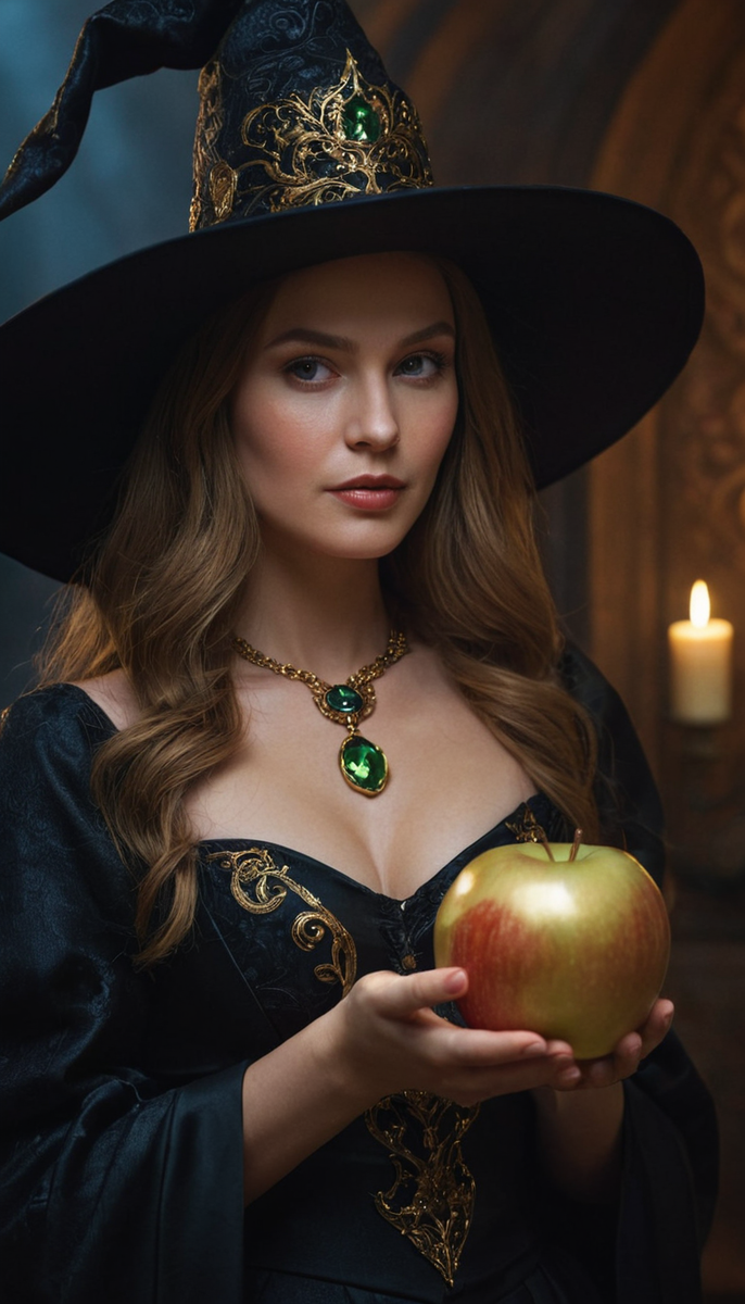 Может быть, это предостережение о ловушках, расставленных на пути каждым из нас? Или, быть может, это намек на то, что истина скрыта за яркой оболочкой, и лишь тот, кто осмелится заглянуть глубже, сможет ее постичь? Ведьма с яблоком – это не всегда злодейка из сказки, это мудрая наставница, предлагающая выбор: остаться в неведении или рискнуть познать запретное.