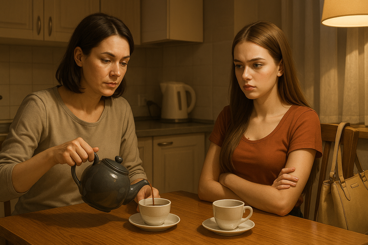 На кухне она устроилась за столом, скрестила ноги и оглядела комнату. Не нахально — оценивающе. Я поставила перед ней кружку с зеленым рисунком лаванды, себе — с синей полоской.