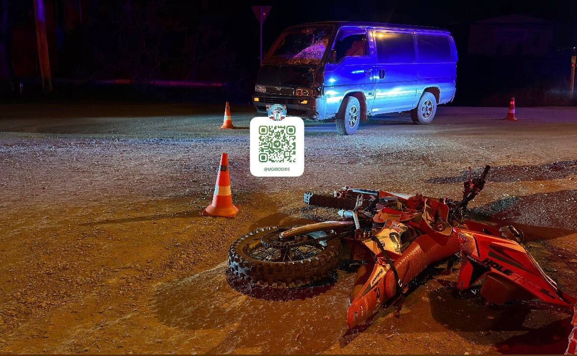 В Южно-Сахалинске мотоциклист и его пассажир получили травмы в аварии 🤕