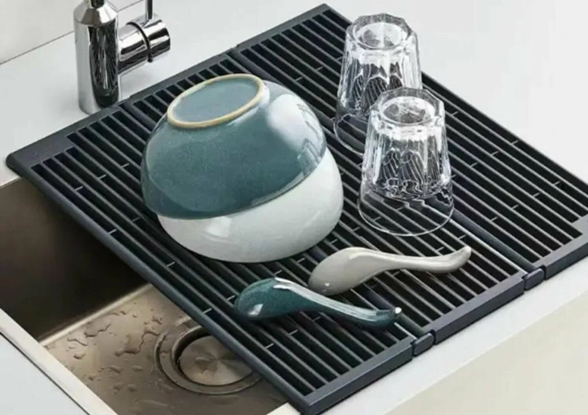 Сушка посуды становится более гигиеничной — вода стекает прямо в раковину, предотвращая появление луж и брызг на столе. Уход за сушилкой простой: материал легко моется и быстро высыхает.