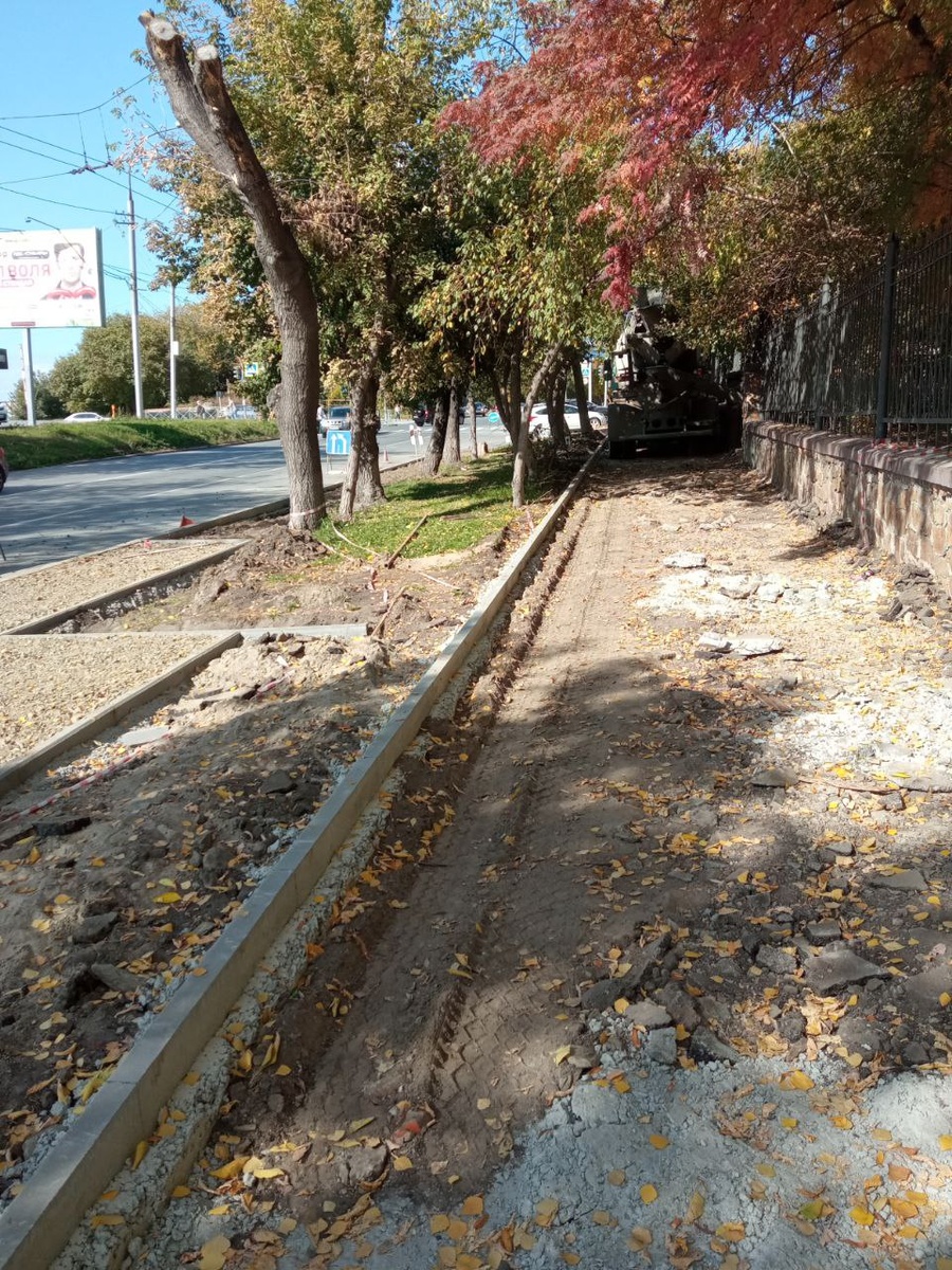 Ремонтируют тротуар вдоль госпиталя ветеранов на ул. Советской.