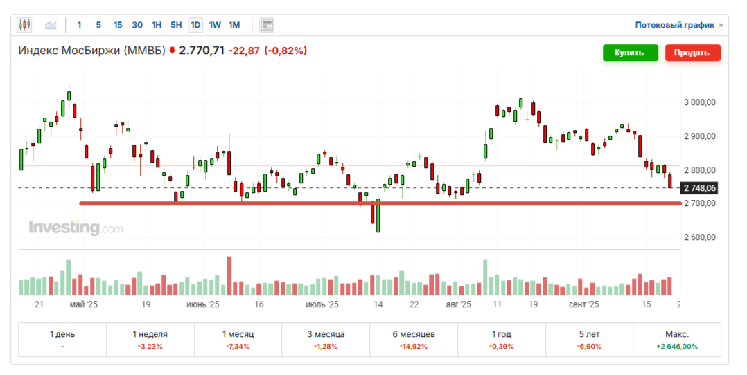 И, как видим, подошел к зоне своих минимальных значений на протяжении нынешнего года - 2700, если не считать краткосрочную просадку в июле ближе к 2600.