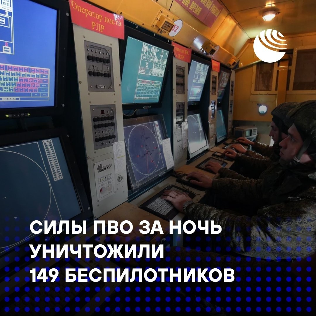 Средства ПВО за ночь перехватили и уничтожили 149 украинских дронов над российскими регионами, сообщили в Минобороны. Из них:
