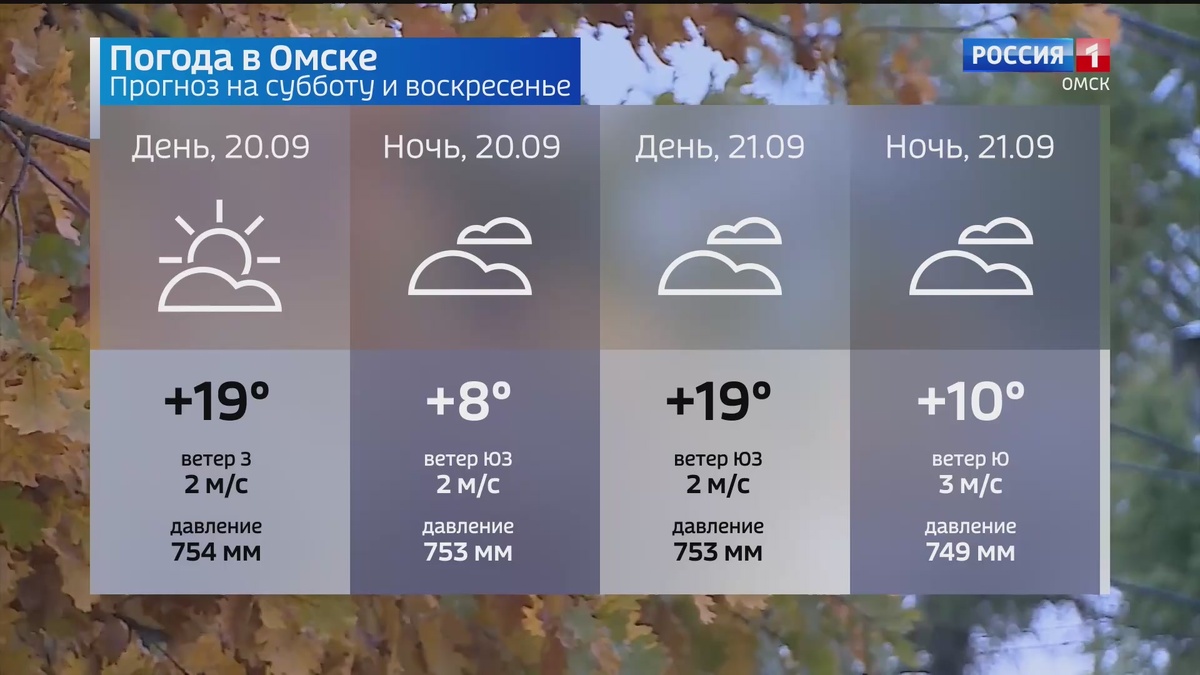 По данным Обь-Иртышского УГМС, сегодня днём температура воздуха составит +19…+21°C, без осадков. Ветер западный 2-4 м/с. Ночью температура воздуха составит +7…+9°C.