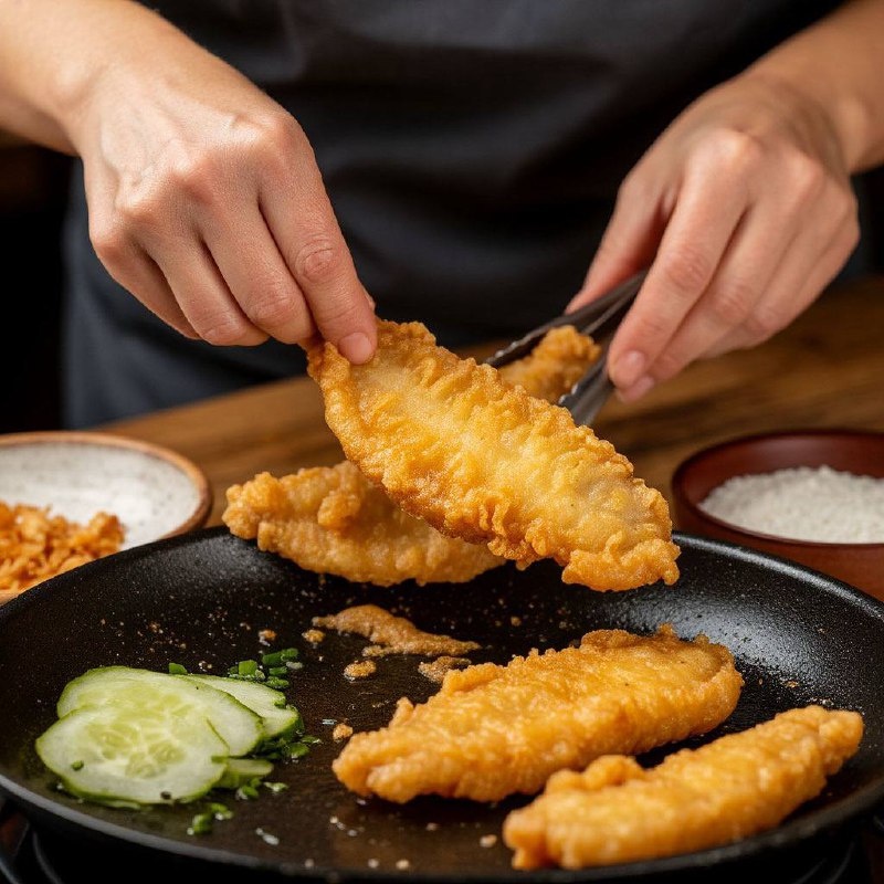 Так вкусненько)) Ингредиенты: * 1 кг рыбы (филе или тушки) * 2 яйца * 4 столовые ложки муки * соль и перец по вкусу * растительное масло для жарки Приготовление: 1. Подготовьте рыбу, очистив ее от костей и кожи, если необходимо. Нарежьте на кусочки. 2. Взбейте яйца в миске, добавьте муку, соль и перец. Перемешайте до однородности. 3. Обмакните кусочки рыбы в тесто и обжарьте на растительном масле до золотистой корочки. 4. Подавайте с соусом по желанию.