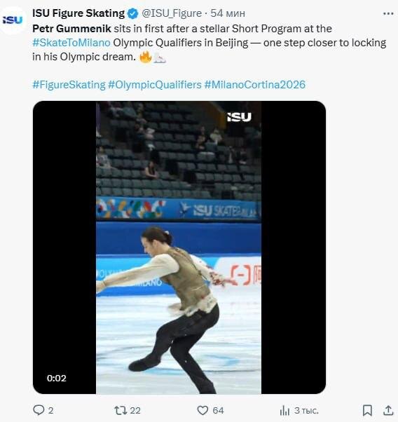 Международный союз конькобежцев наложил украинскую песню на фрагмент выступления российского фигуриста. Пост в Х уже потёрли. Пётр Гуменник на самом деле выступал под саундтрек из фильма «Парфюмер. История одного убийцы» (второе видео). Решение поменять звуковую дорожку не объяснили. Россиянин лидирует по результатам короткой программы на олимпийском отборочном турнире. На втором месте мексиканец Донован Каррильо. На третьем — француз Франсуа Пито. Заря | Новости - Подписаться