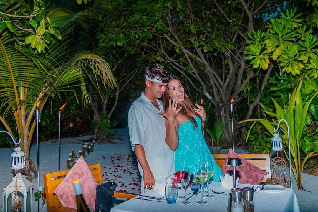 Ну что сказать, участник GAYAZOV$ BROTHER$ умеет удивлять. Долгое время он тщательно оберегал свою личную жизнь, но весной решил признаться, что не одинок и представил свою девушку - олимпийскую чемпионку по художественной гимнастике Веру Бирюкову. «Я не просто влюблен, а очень сильно люблю ее, а это разные вещи», - заявил тогда исполнитель. Но мы и подумать не могли, что всего через несколько месяцев он поразит нас другой новостью! Вместе со своей любимой Тимур отправился в отпуск на Мальдивы. И там сделал ей предложение! Все было как положено: романтический ужин на берегу, вокруг цветы и лепестки роз, певец встал на одно колено и преподнес кольцо! Конечно, она согласилась. Любуемся фоточками и с нетерпением ждем свадьбу! Фото: социальные сети