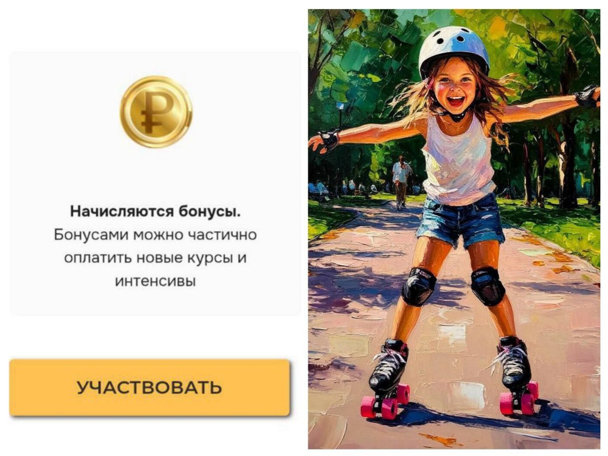 Уже в понедельник начинаем долгожданную игру 🪅 Мы вместе нарисуем задорную девчонку на роликах🤸♂🛼 Напоминаем, что за покупку игры начисляются бонусы💰✨ 1190 или 2190 рублей💥 в зависимости от приобретённого пакета Что ещё получают оплатившие - записи всех эфиров навсегда - 2 разбора работ - участие в конкурсе 🥳 🎉 на котором будут определены 3 победителя: 🥇 Выбор самого Михаила 🥈 В результате общего голосования 🥉 Выбор Судьбы при помощи генератора случайных чисел✨ Победители получат ценные призы 🎁 наборы легендарных кистей от фирмы "Реставратор"✨ Выбирайте подходящий формат участия и подключайтесь 👉https://paint.art-class.online/it_turned_out?utm_source=tg_post А мы продолжаем дарить скидки 🎁 до 22 сентября -50% на лучшие курсы Artclass "ОСЕНЬ -50%"🍁 - это ОЧЕНЬ👌 Успейте купить выгодно 👉https://paint.art-class.online/courses_autumn50?utm_source=tg_post Прекрасной осени, друзья! Успешного творчества!🍂✨